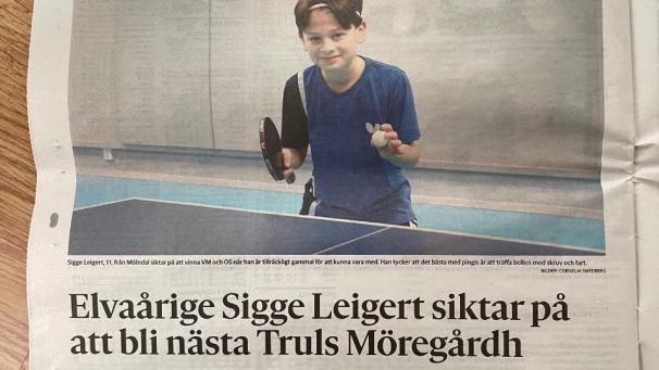 Jag heter Sigge och är 12 år. Pingis är det bästa jag vet. Just nu är jag bland de bästa i Sverige i min ålder. Jag tränar och tävlar även mot vuxna för att utvecklas så mycket som möjligt. I framtiden drömmer jag om EM, VM och OS.